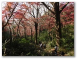 2021年12月16日(木) ◆ようやく腰の状態が改善してきたので、鎌倉屈指の紅葉の名所、獅子舞の谷にモミジを見に行く。コースは、北鎌倉駅から天園ハイキングコースに入り、獅子舞の谷でゆっくりと時間を取って紅葉を鑑賞し、二階堂に下りて鎌倉駅に至るという楽チンプラン。◆12月も、はや中日なのに、小春日和と言ってみたくなりそうな、穏やか晴天日。北鎌倉駅を出て歩き始めると、すぐ分かったのだが、モミジの紅葉はほとんど終わっていた。昨年12月25日に歩いた時のイメージで考えていたのが間違い。開花情報や紅葉情報は、最新のものを入手しなければならないと、改めて思った。◆ところが獅子舞の谷に入ると、まだ紅葉が残っていた。これに「お日様マジック」が加わり、赤いモミジも緑のモミジも、夢のような色彩を現しているのだ。今年も「来てよかった」と思った。 ❀❀❀ ❢