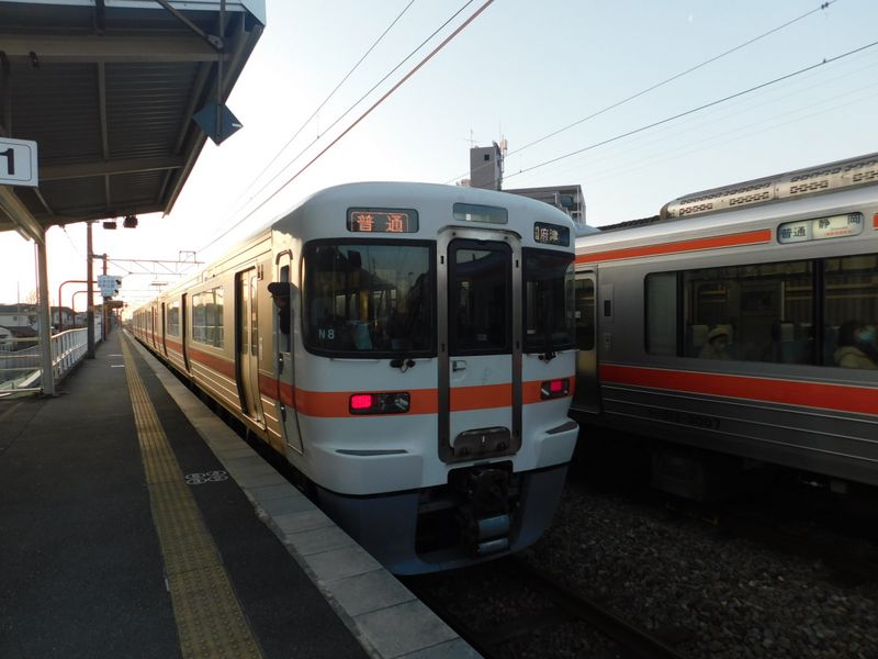 -- 御殿場線上大井駅に来た。右は静岡行き。6:44