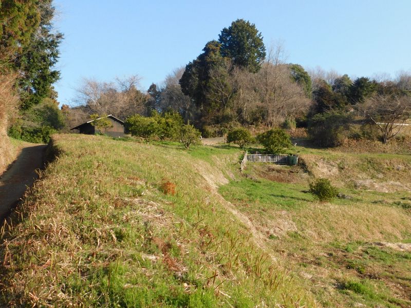 -- 行く手に、ミカン小屋のようなものが。