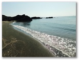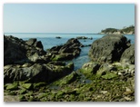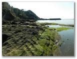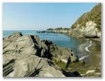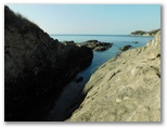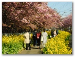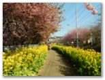 三浦市 ◆今年は草木の開花が早い。三浦海岸駅付近の河津桜も満開になってしまった。今年初めて、その桜並木とソレイユの丘の菜の花畑とを含むウォーキングを計画したのだが、もう遅すぎるかもしれない。そう案じながらも、ようやく行ける日がやって来た。◆スタート地点は三崎口駅。ところが駅のトイレが混んでいて、乗る予定だった荒崎行バスを逃してしまった。電車では前方の車両に乗ればよかったようだ。少し待って、急行ソレイユの丘行きに乗る。◆ソレイユの丘の菜の花は、まだ十分にきれいだった。残念ながら、富士山、丹沢、伊豆などは、霞がかかって全く見えなかった。◆正午きっかりにウォーキングを開始。ソレイユの丘を出て、暮浜港(栗谷浜港)へ下りる。漁具その他がごちゃごちゃと置かれた(関東ふれあいの)道を、遠慮がちに歩いて何とか海岸に出る。そして温かな海水に手を浸し、わくわくしながら岩礁地帯に向かう。◆岩肌は摩擦が極めて大きく、足元の安定感は抜群だ。岩の間を流れる透き通った海水を見ながら、岩礁を渡り歩くときのワクワク感は、少年時代以来久しぶり。浜辺では、たくさんの貝殻や、色ガラスの破片を拾った。次回はもっと長く歩ける海岸コースを考えよう。◆円徳寺の桜は終了し、三崎口駅付近の河津桜は最終盤だった。しかし本命の三浦海岸駅の桜並木は今が真っ盛り。好い日に行けて、本当によかった。 ◎