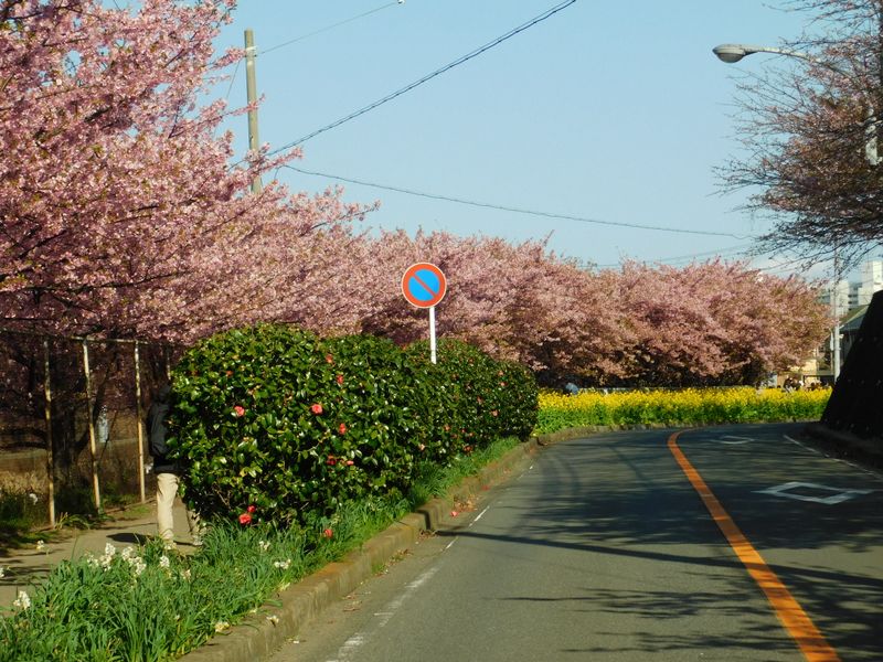 -- 京急線沿いの河津桜と菜の花。14:11