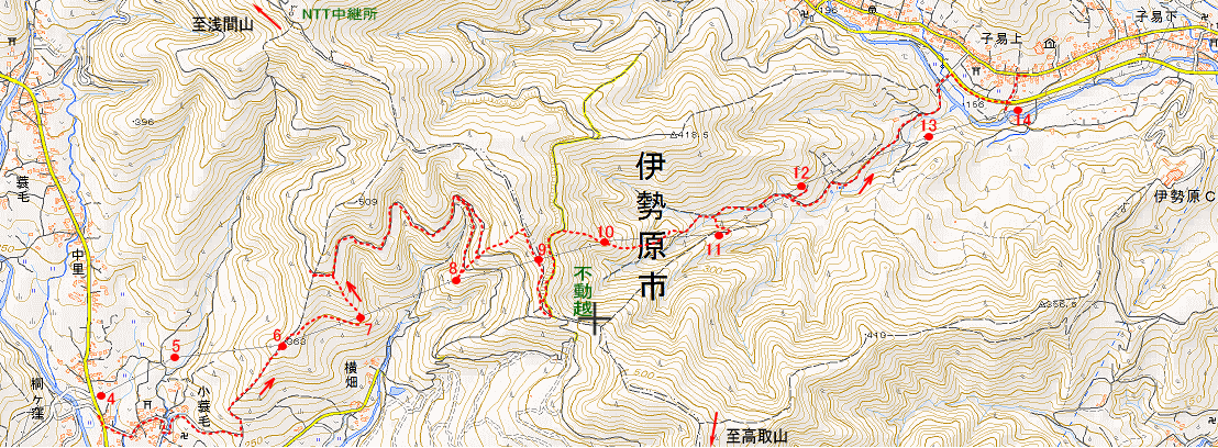 地理院地図: 秦浜線9号鉄塔 , ルート図