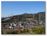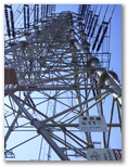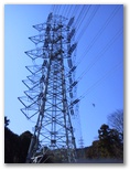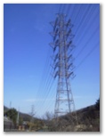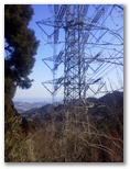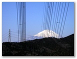 9号鉄塔直下の展望は、奥に美しい富士山があり、ここを通るすべての人々の目を引くでしょう。人はここに立って何を思うでしょうか?「送電線ってファンタジックね!」「送電線が邪魔だなあ!」「ぶら下がって滑り下りたい!」等々。中には「飛びたい!」という衝動に駆られる人がいるかも知れません。残念なことに、ここでデジカメが電池切れになりました。以後の写真は、携帯で撮影したものです。