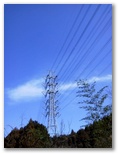 2月19日(金)、雨水の日は快晴で暖かな日となりました。4月上旬並みの気温だということで、ヤマビルの動かないうちにいつか行こうと思っていた、高圧送電秦浜線(しんひんせん?)の山越え区間を歩いてきました。懸垂曲線が正確に揃った送電線は、鉄道の輝く線路のように美しいものです。いくつかの変圧器を介して、わが家、わが部屋にもつながっている送電線。見上げれば猫バスのような速さで夢が駆け抜けて行きます。