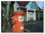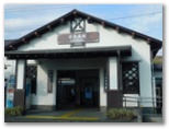 宇佐美駅に到着。無人駅なので、簡易改札機をピッと鳴らして外に出ます。すると、駅舎の隣に小ぎれいな建物がありました。「旅のアシンル」なる、不思議な名前がありますが、これはトイレ。丸型郵便ポストに「ここは海抜12.6m」とあるのをチラリと見ます。さて、ここからルートファインディングが始まります。登山口までの長い道のりを、正しく選ばねばなりません。ヤマレコ情報に従い、線路に沿って熱海方向に少し歩き、「宇佐美踏切」を渡りました。