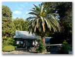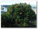 道路沿いには早咲きの桜が咲き、八朔でしょうか、ミカンの木には、大きな実がたわわに成っていました。でも道標の類は見当たりません。道を間違えないよう、ヤマレコアプリを開きっぱなしにして歩きます。すると圓應寺(えんのうじ)が見えてきました。道草ですが、少し見学します。正門から入り、本堂と、右手の鐘楼、左手の大きなヤシの木を拝見しました。ヤシはカナリーヤシ(フェニックス)で、デーツに似た実(未熟果)を着けていました。
