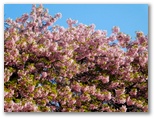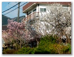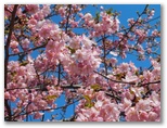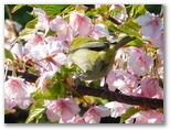 圓應寺に別れを告げ、5分も行かぬうち、花岳院に着きました。満開の桜が外からも見えます。伊東小室桜という品種で、自然交配により生まれ、地元で発見されたそうです。葉桜になっているので、遠くから見たときは色が濁って、もう終わりかと思いました。でも寺の中で見ると、花も葉もみずみずしい春の色。とてもきれいです。他に大輪のバラのような椿や、びっしりと咲いた紅梅などが見られました。禅寺は、いずこの寺もきれいに造られています。