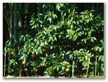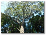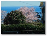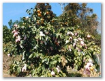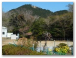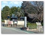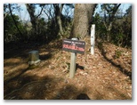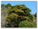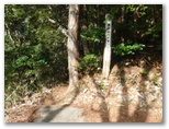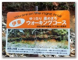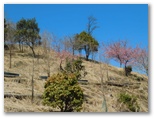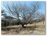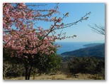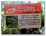 しばらく行くと、運動場のような広場がありました。その隅に桜の小木があり、「早咲きオオシマ×カンヒ 2007」というタグが付いていました。どうもこの地方には、普通よりも早咲きの大島桜がたまたまあって、寒緋桜と同時期に咲いたことで、新しい品種が生まれたということのようです。この奥には桜山の別荘地よりも大きな、伊豆巣雲台の別荘地があり、無断立入禁止、駐車禁止などの立札がありました。ハイキングコースは、その南縁を巻いていきます。