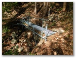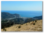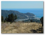 宇佐美駅から時計回りで巣雲山に登ると、海を見ながら楽しく下山できます。もちろん、足元もしっかり見なければなりません。道幅は車が走れるほど広く、轍がえぐれないよう補強してあります。オフロード車が登ってくるのかも知れません。少し下ると「どっこい処」なる休憩所がありました。宇佐美の町と海を撮って、帰宅後に拡大すると、宇佐美小学校、同中学校、宇佐美駅などがしっかり写っていました。海面は優しくうねり、浜辺に打ち寄せる白波も穏やかそう。