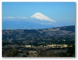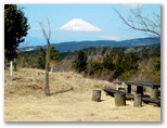 登って来る道すがら、雲に隠されていないかと心配した富士山でしたが、きれいに見えました。陰影も輪郭もやわらかな、春の富士です。三角点は二等ですが、展望は一等。好い日によい山に来ました。まずは展望台に上がります。そこは、360度、遮るものの一切ない、天地開放の特等席。ここに自分一人しかいないのがもったいない。富士山から時計回りにざっと見て、箱根山、大山、三原山、天城山、達磨山、沼津アルプス、南アルプス、そして富士山に戻ります。