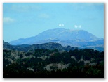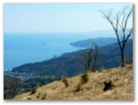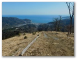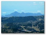 大丸山頂上(503m)には四等三角点がありました。箱根の神山と駒ヶ岳がよく望めます。少し下って、青緑のペンキの塗られたトイレを左に見て、また少し登り返すと「富士見展望ひろば」でした。「富士山はこちら↑」の標識がありますが、そこは富士山の好展望地。富士山が見える日には無用の標識です。特筆すべきは、その反対側、宇佐美の町と海です。対岸の見えない、無限の大海原を望み、翼があったら、鳥のように飛んで行きたいと思いました。