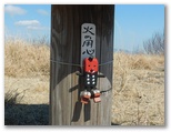 「富士見展望ひろば」に絶景ともいえる展望があるのは、ハゲ山だからです。山林火災か、景観伐採か、何かがあったのでしょう。現状では、枯草に火が点けば、あっという間に燃え広がりそうです。ハイカーは一般に好展望地を歓迎しますが、こんなに広い裸地は必要ありません。見方によっては怖い「展望ひろば」。人の命と自然を守ってくれるのは常緑照葉樹林ですが、地元の方々は百も承知だと思います。でも今は、桜が咲いて、とてもうららかな山です。