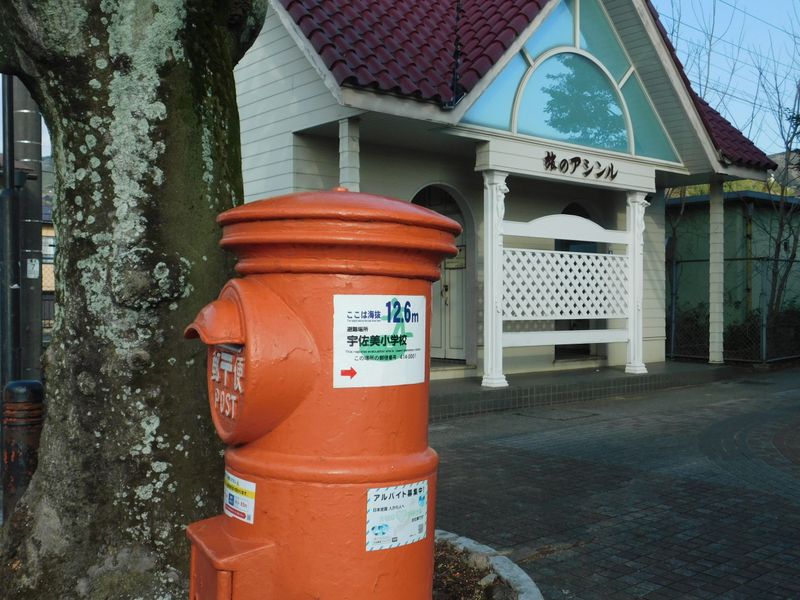 -- 駅舎の隣に、きれいなトイレ。海抜12.6mとポストに。