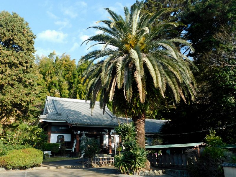 -- 庭に大きなカナリーヤシ(フェニックス)の木がある。