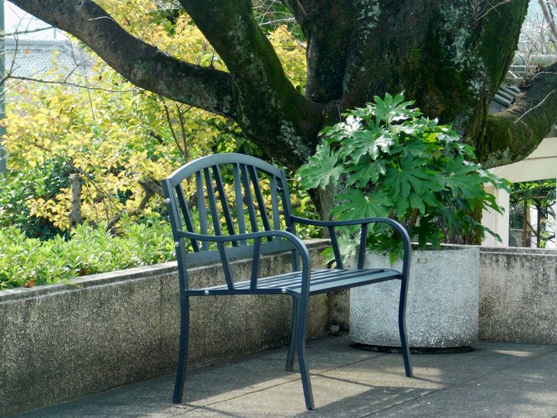 -- 桜の下にすてきなベンチ。