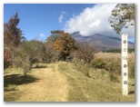 14時10分、須山口登山歩道の「上り1合」に到着しました。ここは、この夏に御殿庭を訪ねたときの出発地点です。須山浅間神社を発ってから、ほぼ5時間。道中のルートファインディングが、ピンクテープと道標のおかげで、予想外にスムーズでした。次のバスまで時間があるので、腰切塚に登ってみましょう。水ヶ塚公園からは至近距離にあります。公園の広い駐車場を通り抜けて行くと、たくさんの車がありました。車の皆さんは、どこに行ってるのでしょうか?