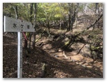 11時34分、弁当場に到着。「弁当場の今昔」という説明板によると、源頼朝が催した大規模な巻狩の時の炊事場だったそうです。須山地域では貴重な水場で、今でも生活用水の水源となっているとのこと。苔生した水飲み台がありますが、野鳥用なのか、「飲料用ではありません」と書いてあります。その下には、「クマ出没注意」とも。そう言えば、きょうは熊鈴を忘れてきました。どうか熊と出遭いませんように.....。