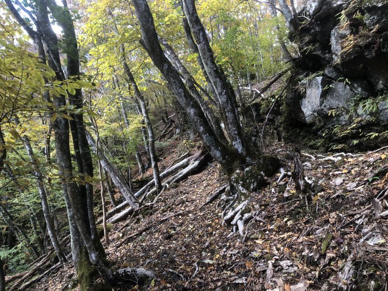 -- トラバース:落ち葉がカラカラに乾いていて助かった。