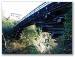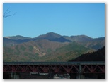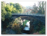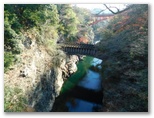 これまでバスの車窓から何度も猿橋を見ました。でも観光バスではないので、見られるのはほんの一瞬。下山後のバスを途中下車して立ち寄ろうと思ったこともありましたが、いざその時になると、疲れのせいでどうでもよくなり、猿橋駅まで乗ってしまうのです。ならば、登山前に見ようと思い立ち、早めの電車に乗り、猿橋駅から猿橋まで歩きました。で、猿橋には人っ子ひとりいませんでした。白くうす霜の降りた静かな橋。足跡を残して渡ります。来た、見た、渡った。
