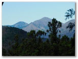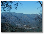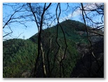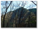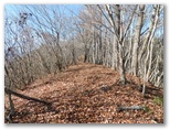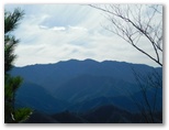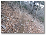 林道を横断した地点から登山道に取り付きます。昨年はここの障碍物であった倒木も、今回は容易にくぐれました。道はジグザグに付けられ、思いのほか軽快に登れます。途中、奥秩父の飛龍山を望める場所がありました。でもそれ以上に目を引いたのは、雁ヶ腹摺山から楢ノ木尾根を経て大峰に至る長い稜線です。私は一昨年に歩いた楢ノ木尾根に少々思い入れがあって、いつか近くの山から全容を眺めたいと思っています。手前の宮地山は、それを叶えられるでしょうか?