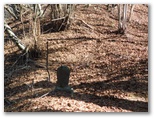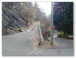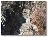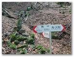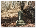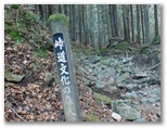 鈴ヶ尾山では、十分に心が満たされました。次は大桑山に向かうのですが、まず旧新の突坂峠まで、来た道を戻ります。ここで、来た時は気付かなかったのですが、二つの小山を抱えた大桑山の姿を初めてよく望めました。小山の一つは大桑山の中腹の突坂山、もう一つは電話塔の立つ小山。その姿が、二人の子を抱える母親のようでもあり、立派な山容です。折よく丈夫な棒も拾えたので、あの落ち葉の急坂も無難に下れました。石仏にお礼を言い、ガードレールを跨ぎます。