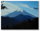 峠に立つと、道志の山々が見えてきました。ああ、ここは峠なんだ!こういう情感が湧いてくるのも、峠の魅力の一つ。下りに転じた林道を進むと、無線中継所専用の林道が左に立ち上がります。すると、1分も行かないうちに、すばらしい富士山がありました。鈴ヶ音峠の富士山。松の木によるフレーミングも好し。「富士を望む峠100選」という企画があれば、推薦したいくらいです。経験上、富士山はきれいに見える時に撮っておくのが吉。本日の最も美しい富士でした。