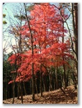 なおうれしいことに、山頂から富士山を望めました。おそらくこの富士は「秀麗富嶽十二景」のような景観伐採によるものではなく、自然の恵みでしょう。鈴ヶ尾山がますます好ましくなりました。続いて、あの真っ赤なモミジを見に行きます。それは、近づくほどに、なお見事なモミジでした。何モミジか、植栽か、自生か、いずれにせよ、平地での紅葉が終わりつつある今、紅葉の最大美を見せています。「大秋日モミジ」と勝手に命名しようか、とも思いました。