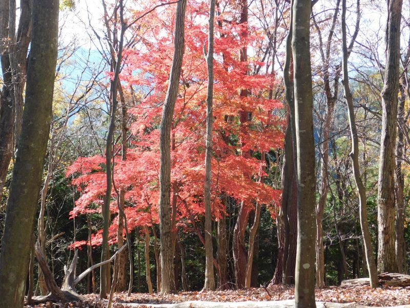 -- 鈴ヶ尾山頂広場に素晴らしいモミジ。10:50