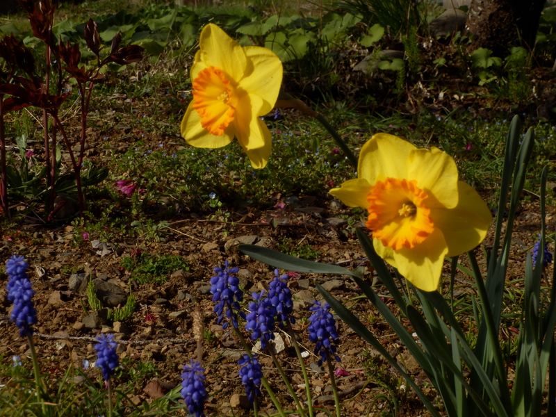 -- ラッパスイセンとムスカリ(畑地にて) 15:07