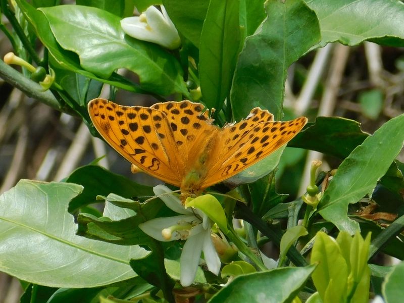 -- 後翅が少し壊れた、クモガタヒョウモン。11:22