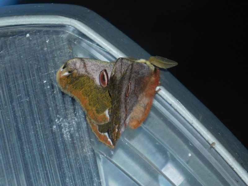 -- ヒメヤママユ No.6:翅を半ば閉じて街路灯に。