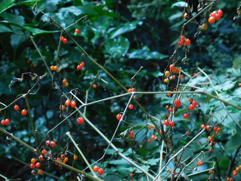 -- 葉が萎れて、ハダカホオズキの実。7:47