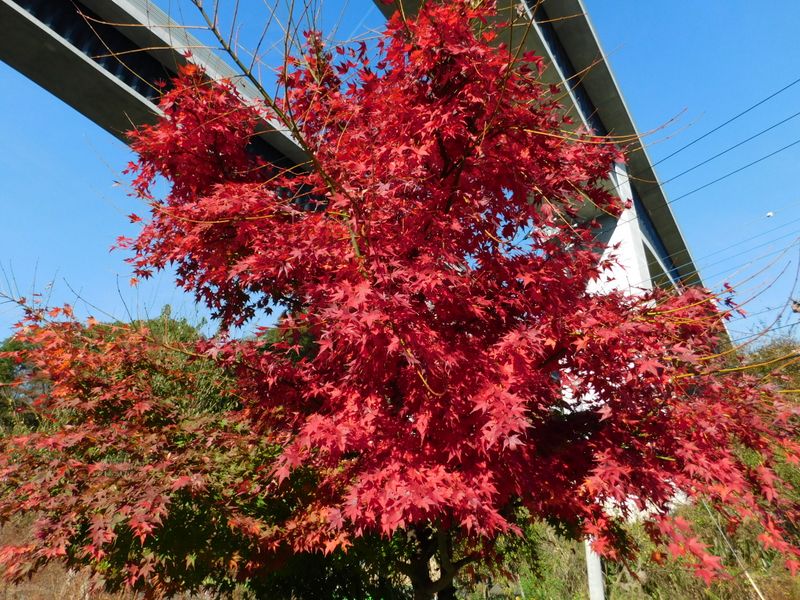 -- さすが、植栽のモミジは真っ赤になる。8:52