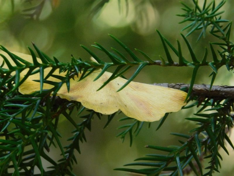 -- 黄色い蛾にそっくりな、イチョウの葉。9:47