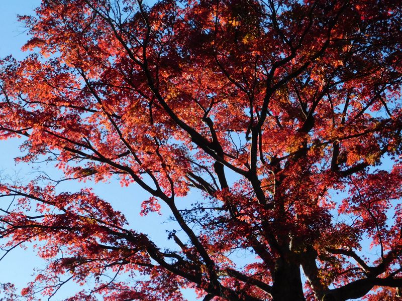 -- 霞台のモミジが朝日を受けて輝く。7:35