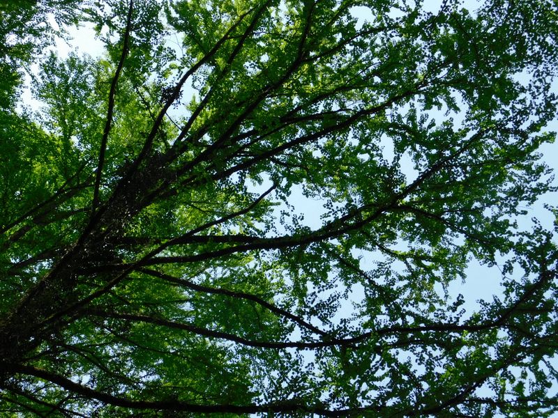 -- 日影沢でカツラの巨樹が繁る。ここは人工林。