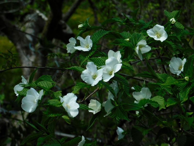 -- 民家の庭先のシロヤマブキ。