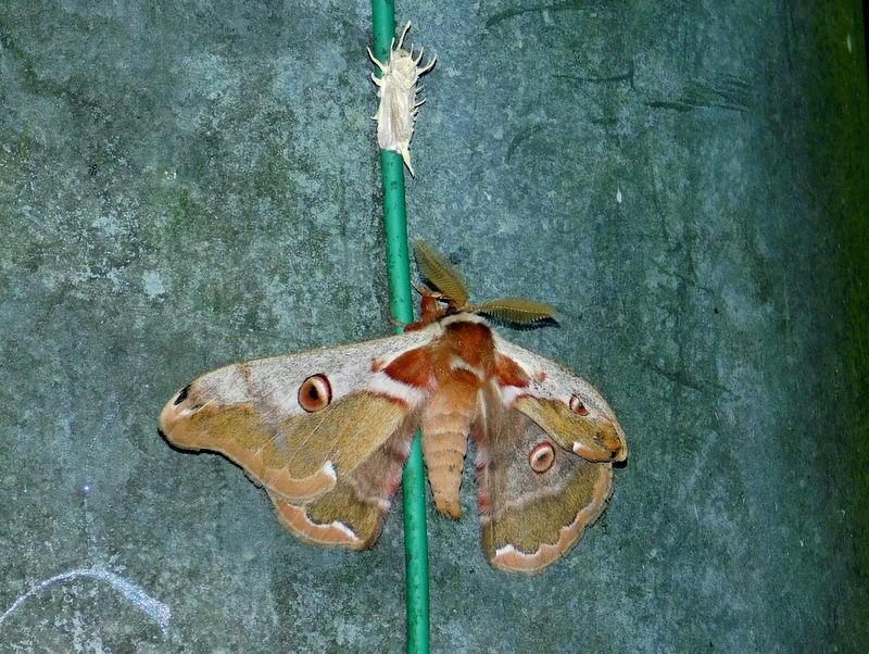 -- ヒメヤママユ♂。右前翅が羽化不全か? 9:07
