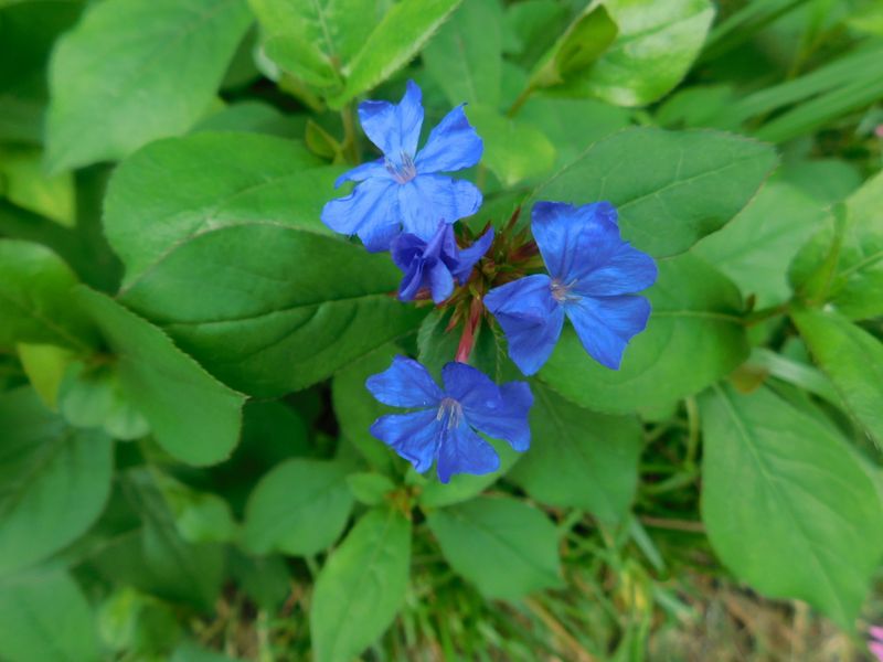 -- 目の覚めるような青は、ルリマツリモドキ。