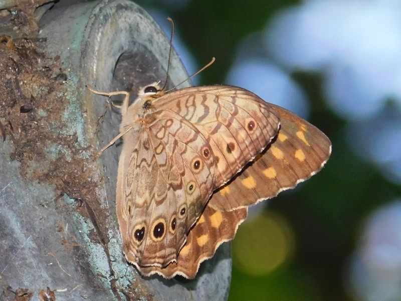 -- 手水場の瓦に、サトキマダラヒカゲ。