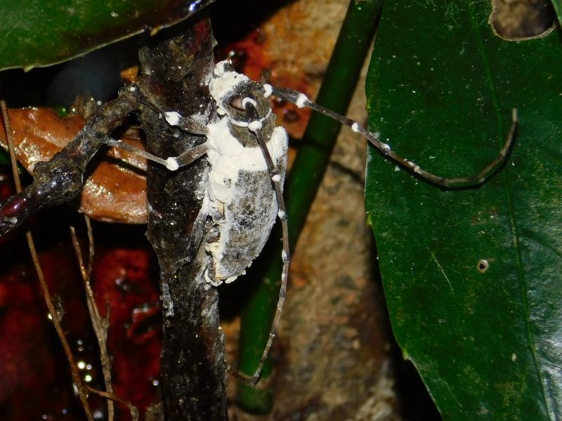 -- ボーベリア菌でフリーズしたカミキリムシ。