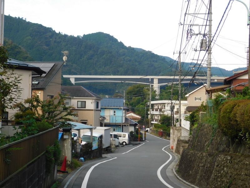 -- 旧甲州街道を西へ。あの圏央道の下が蛇滝口。