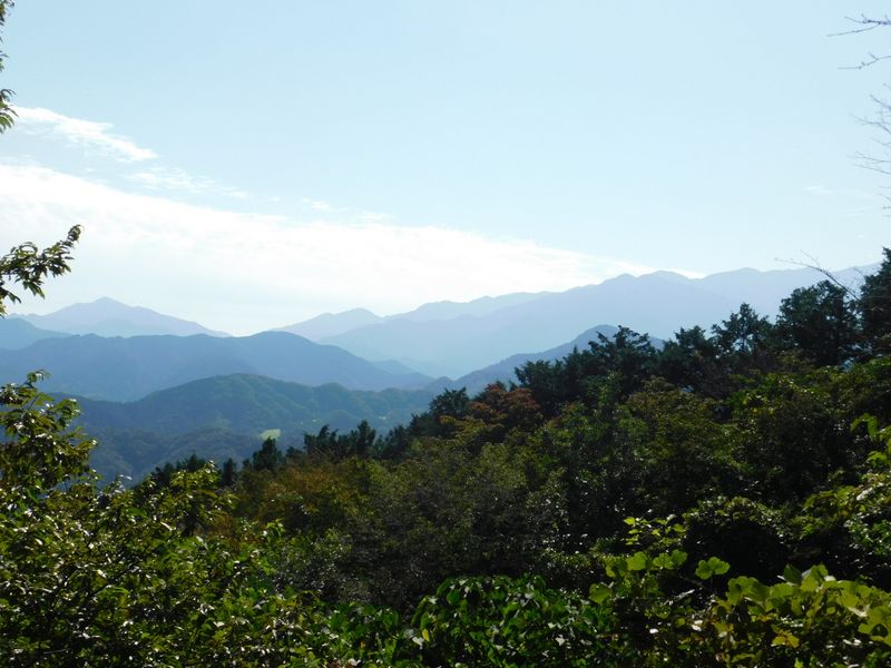 -- 遠方左より、大山、三ノ塔、塔ノ岳、丹沢主脈。