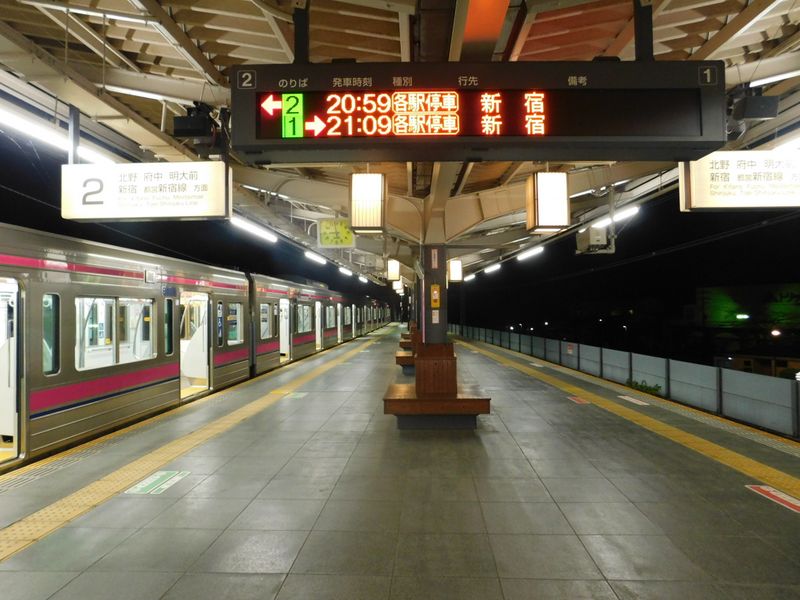 -- 高尾山口駅ホーム:左の電車で家路に。20:58