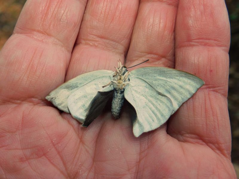 -- ひっくり返った、ウラギンシジミ ♂:翅がシワシワ。