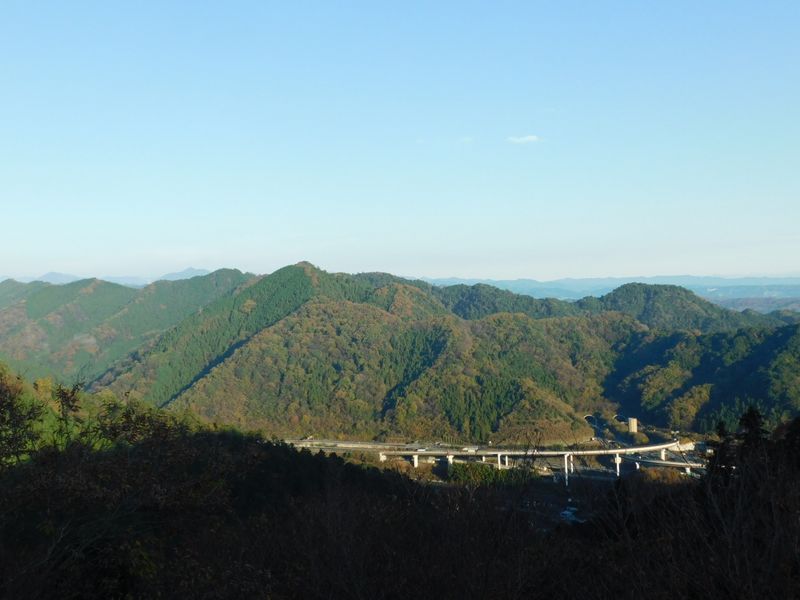 -- 色づいた北高尾山稜を望む。7:35