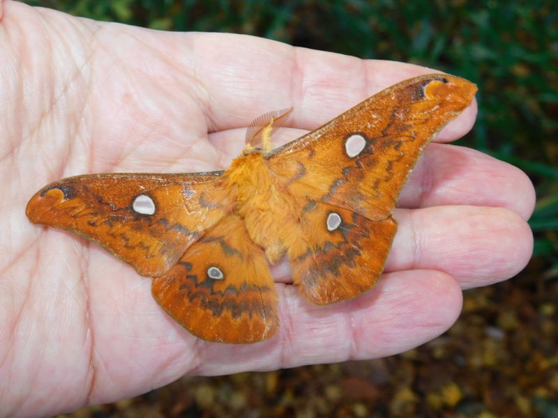-- クモの巣で絶命したウスタビガ♂。