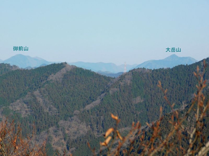 -- 高尾山駅前より、御前山と大岳山を望む。
