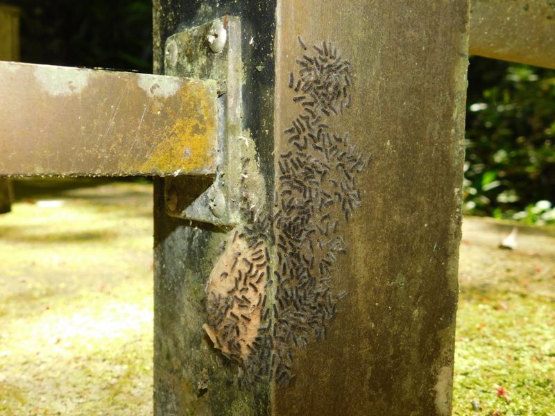 -- 蛾の幼虫の孵化@蛇滝水行道場。マイマイガ?