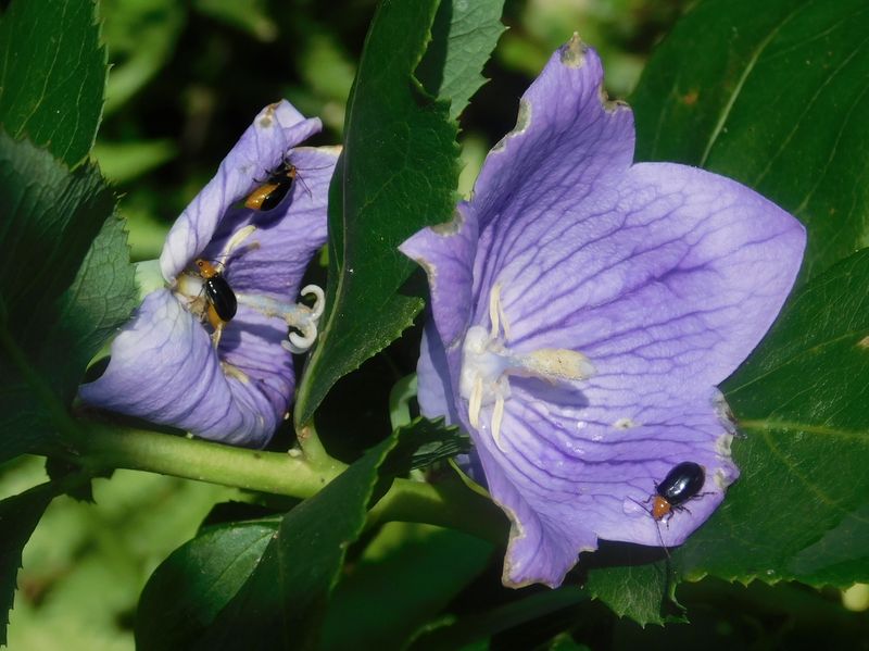 -- クロウリハムシ3頭@キキョウの花